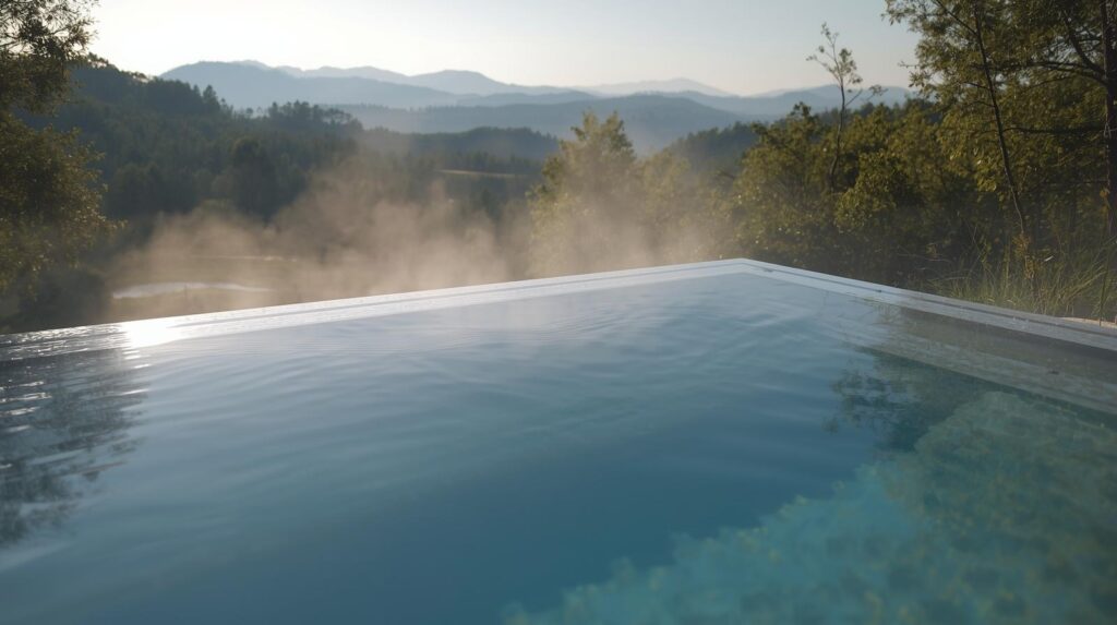 湯面と景色が一体化して見える設計で、四季折々の自然がまるで絵画のように広がります。